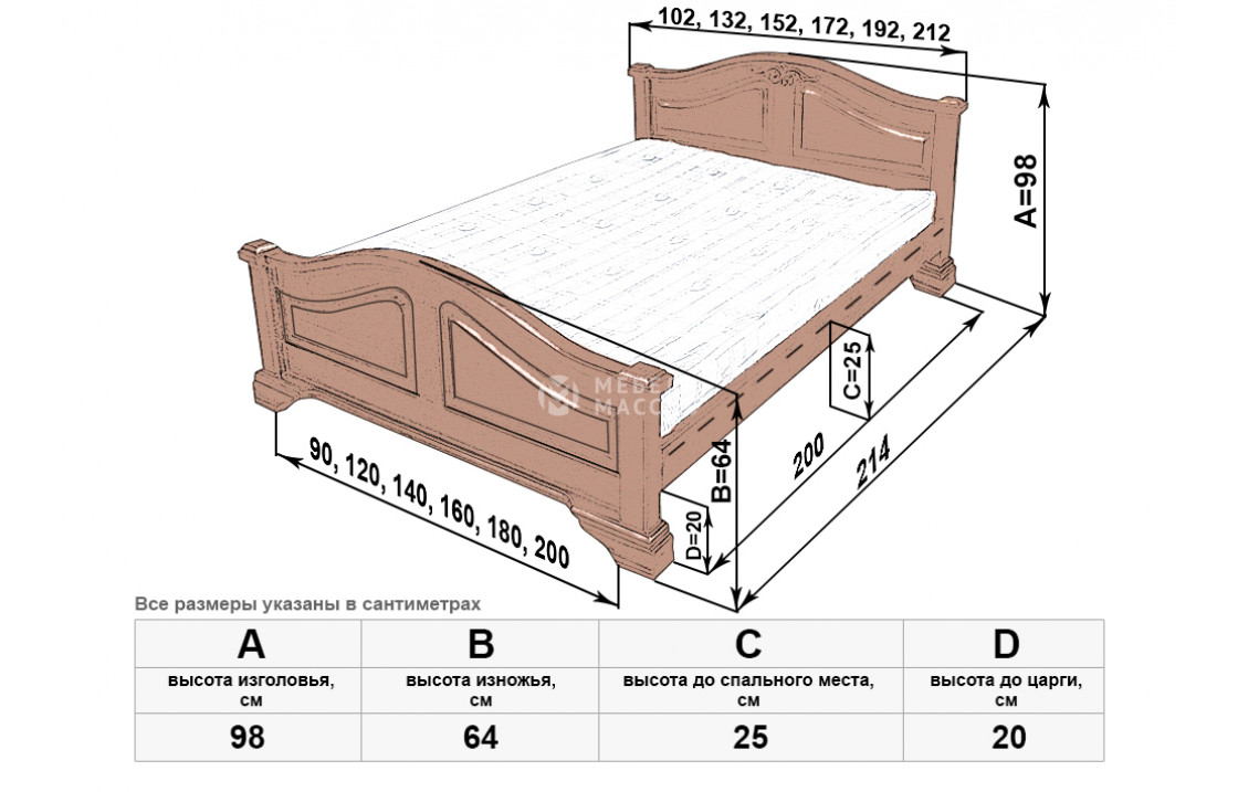 Королевская кровать Европа мод 1 изготовлена из натурального древесного массива. Модель имеет прочную конструкцию и благородный вид. Изделие, которое можно купить по выгодной цене в нашем интернет-магазине, отличается сплошными симметричными волнообразными спинками, переходящими в устойчивые ножки. Осуществляется доставка на дом по Махачкале и Республике Дагестан.| Размер | Цена | |