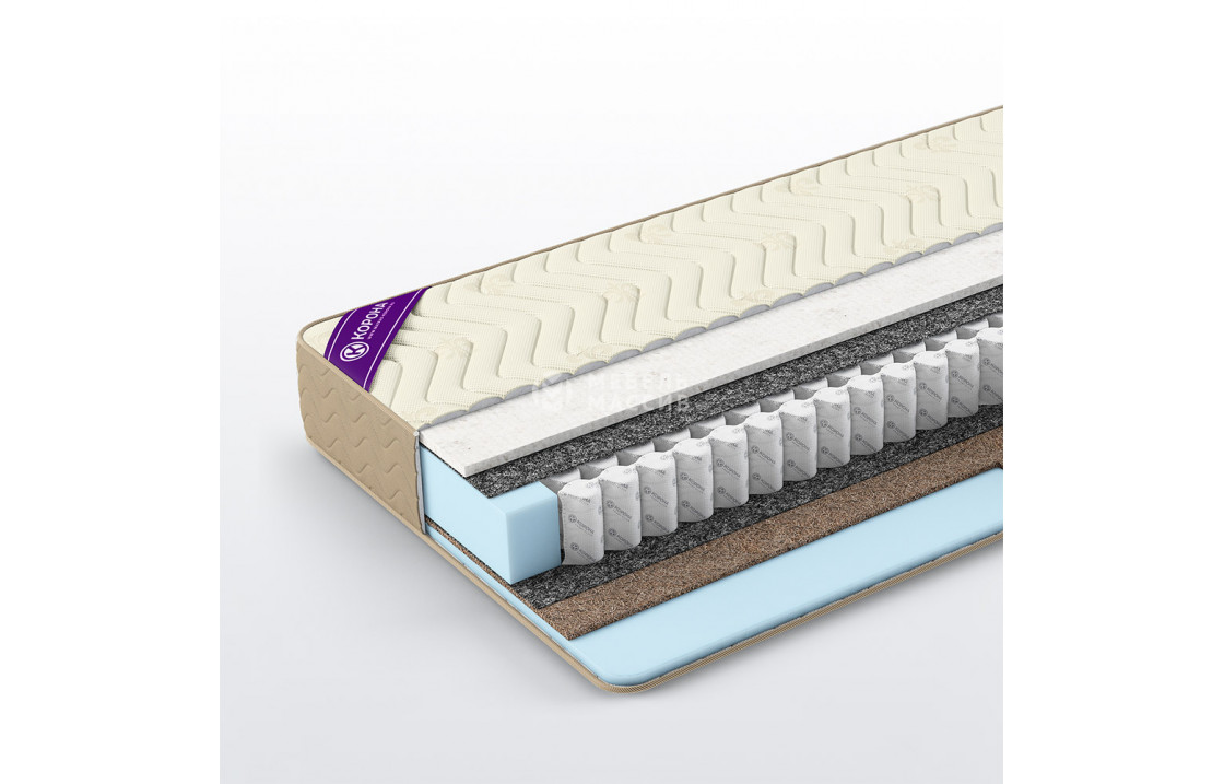 Кокос - переплетенные волокна кокосового ореха, растительного происхождения. Исключительные свойства кокоса в прочности, упругости и гигиеничности. Материал придает жесткости матрасу. Обладает отличной вентилируемостью, устойчив к любой влажности и перепадам температуры, гипоаллергенный и долговечный.