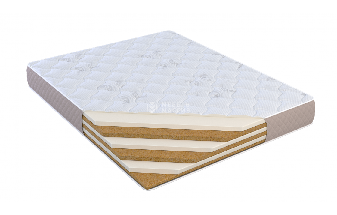 1. Кокос 3 см ? Кокос - переплетенные волокна кокосового ореха, растительного происхождения. Исключительные свойства кокоса в прочности, упругости и гигиеничности. Материал придает жесткости матрасу. Обладает отличной вентилируемостью, устойчив к любой влажности и перепадам температуры, гипоаллергенный и долговечный.