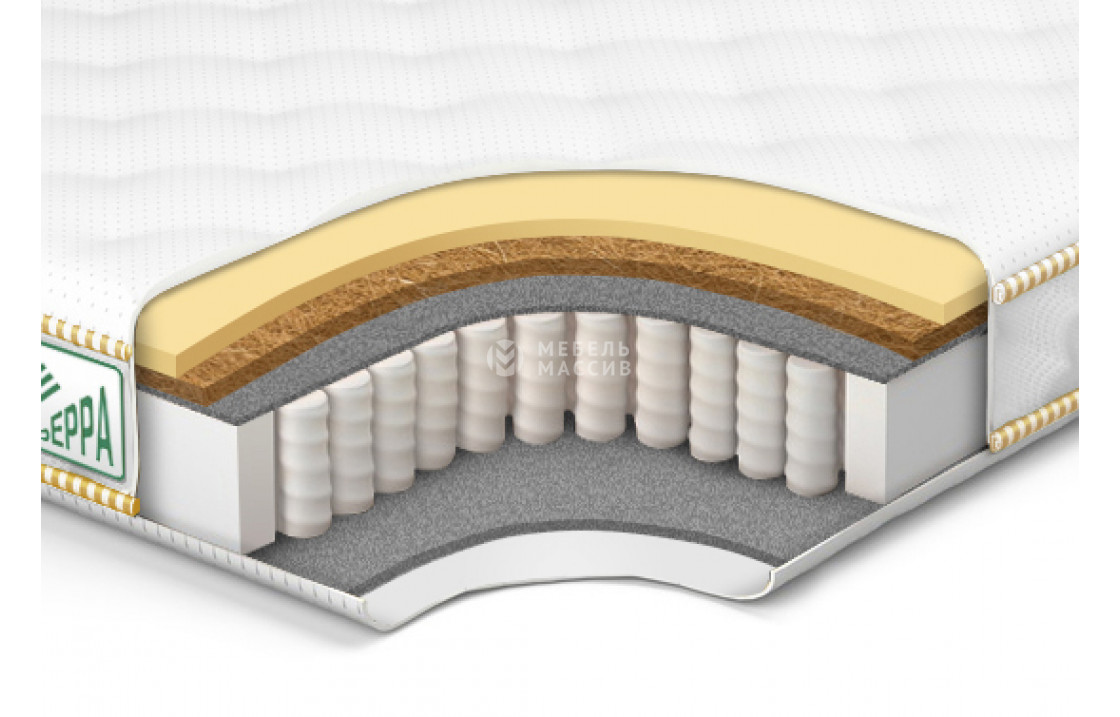 6. Кокос 2 см ? Кокос - переплетенные волокна кокосового ореха, растительного происхождения. Исключительные свойства кокоса в прочности, упругости и гигиеничности. Материал придает жесткости матрасу. Обладает отличной вентилируемостью, устойчив к любой влажности и перепадам температуры, гипоаллергенный и долговечный.