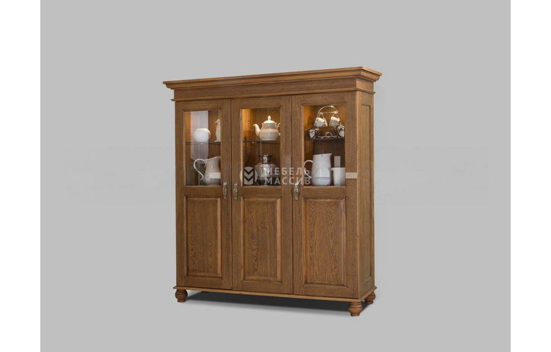 Трехстворчатый сервант из коллекции Винтаж – интересный представитель современной мебели, которую можно легко адаптировать и под классические интерьеры. Он имеет средние габариты и хорошую вместительность. Внутреннее пространство корпуса модели занимают полки, одна часть которых расположена за стеклом, а другая – за монолитным элементом створки. Благодаря наличию застекления в серванте можно хранить декоративные предметы, которые хочется выставить напоказ. Вместе со стеклом материалом изготовления изделия служит настоящее цельное дерево, обеспечивающее надежность и продолжительную эксплуатацию. Доставка по Махачкале и Республике Дагестан.| Размер | Цена | |