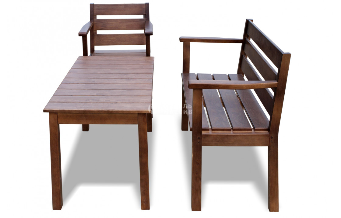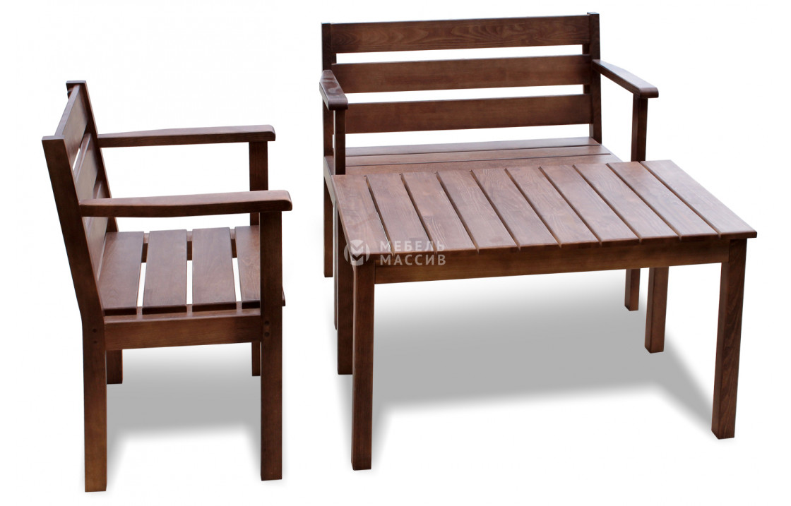 Комплект Дачник из натурального дерева. Модель может быть изготовлена в четырёх вариантах исполнения из древесины на выбор: сосна, берёза, бук или дуб. Широкий выбор вариантов покраски позволяет органично вписаться в любой интерьер. Отличается износостойкостью, надёжностью, лаконичным дизайном. Приобретайте изделие по лучшей цене с доставкой на дом в интернет-магазине «Мебель Массив». Доставка по Махачкале и Республике Дагестан.Рейтинг